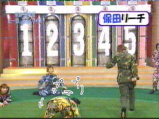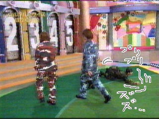 番組の最後、チクリのコーナーで、のの特集(?)。内容は、匍匐前進コーナーの賞品の食い物を、いつもモノ欲しそうに観ている娘。がいて、